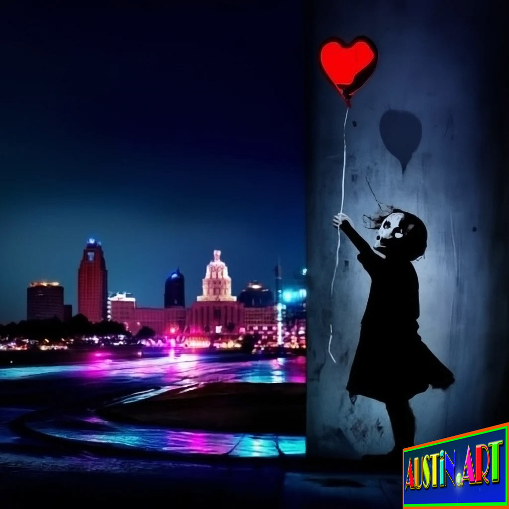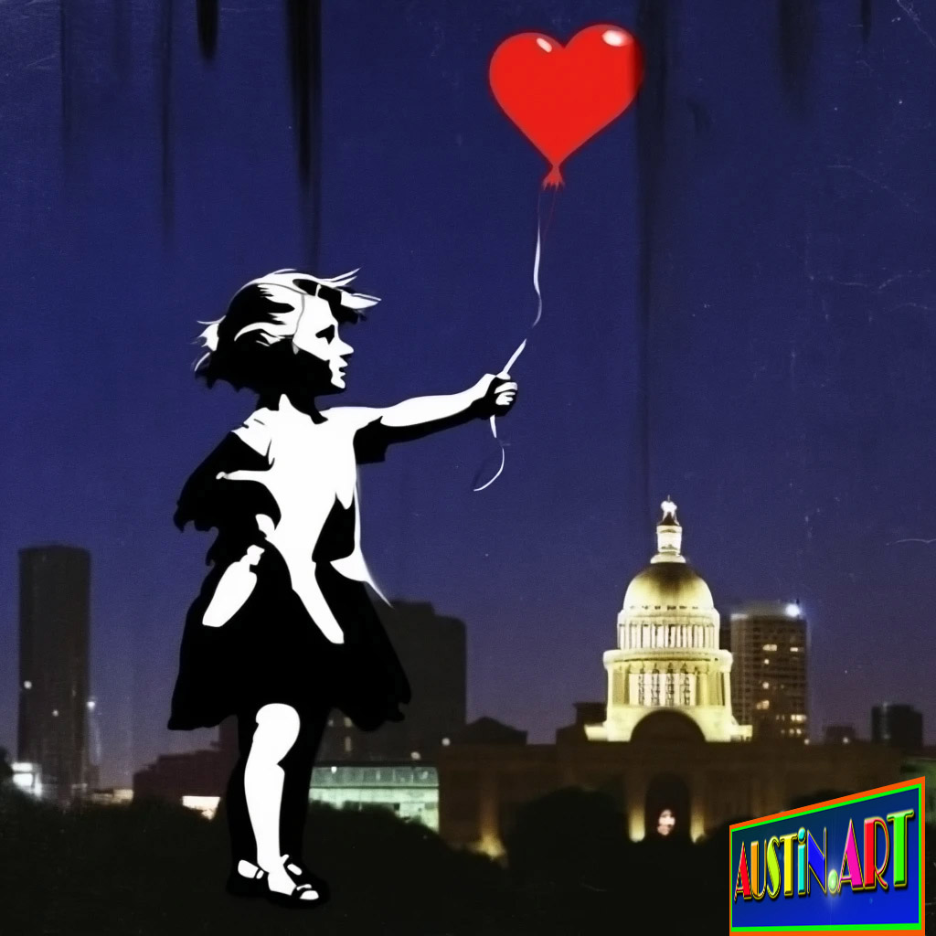 BANKSY IN AUSTIN TEXAS: Hold The Heart! And Fly Away! You stand at the crossroads of concrete reality and defiant fantasy, where the relentless sun of Austin, Texas, beats down upon walls whispering secrets. You’ve heard the legend, you know the style—the sharp stencils, the immediate punch of satire aimed directly at the heart of the establishment. This is the enduring power of the anonymous master, Banksy. But what happens when that global, rebellious spirit lands in the self-proclaimed live music capital of the world, filtering its critique through the lens of a local visionary?